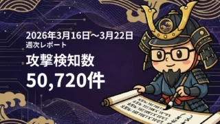 【1. 攻撃トレンドの解説】2026年3月30日から4月5日の1週間で、合計55,106件のサイバー攻撃が記録されました。日別の攻撃件数を見ると、最も攻撃が集中したのは3月30日で9,735件、最も少なかったのは4月2日の6,485件でした。全体的には、攻撃件数は3月31日から4月2日まで減少傾向にありましたが、4月3日から再び増加し、最終日には8,877件に達しました。このように、週の初めにピークがあり、その後一時的に減少したものの、週末に向けて再び活発化したことがわかります。【2. 注意すべきセキュリティポイント】今週の攻撃データからは、特に「xmlrpc_attack」が多く見られる点が注目されます。この手法は、主にWordPressサイトをターゲットにしたものであり、リモートからのアクセスを悪用する可能性があります。したがって、xmlrpc.phpの無効化やセキュリティプラグインの導入が推奨されます。【3. 攻撃元IPの特徴】特に目立った攻撃元IPの一つは、**20.48.232.178**で、3346件のxmlrpc攻撃を行っています。このIPはカナダからのもので、PHPファイルの探索が意図されていることが示唆されています。攻撃の種類が特定されているため、対象となるサイトは特に注意が必要です。【4. 差分の伝達】今週のデータでは、特に3月30日の攻撃件数が顕著で、その後の減少を経て、週末には再び増加傾向に見られました。xmlrpc攻撃が多発していることから、セキュリティ対策の強化が急務です。特定のIPアドレスによる攻撃が増えているため、これらのIPをブロックすることも有効な対策です。【5. まとめ】今週のサイバー攻撃は、特に初めと終わりに集中しており、xmlrpcを介した攻撃が目立ちました。サイト運営者は、適切なセキュリティ対策を講じることが重要です。継続的なモニタリングと迅速な対応が、さらなる被害を防ぐ鍵となります。