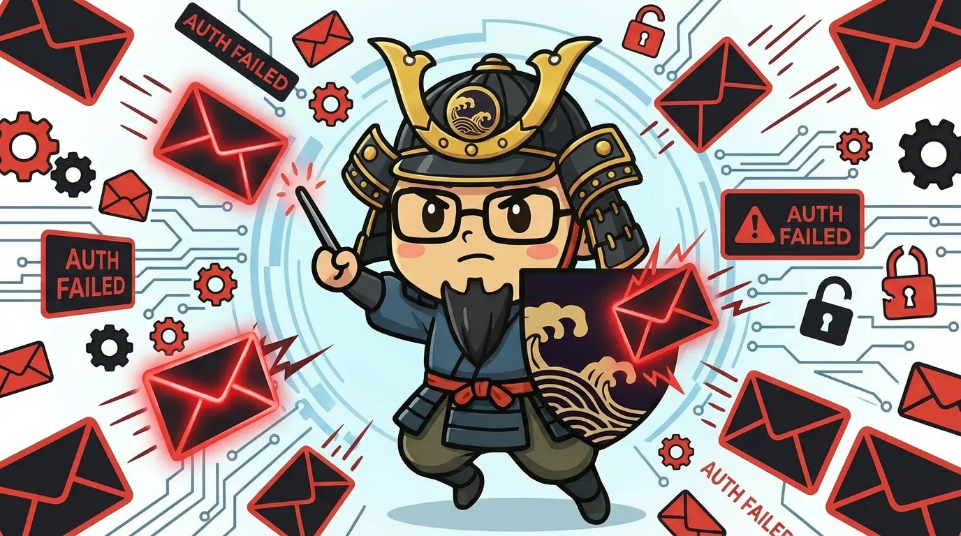 メールサーバー(SMTP/IMAP)への不正ログイン試行です。成功すると、あなたのドメインになりすまして大量のスパムメールを配信され、ドメインの信頼が失墜します。