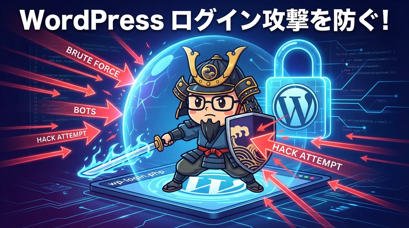 管理画面(wp-login.php)に対して、パスワードを機械的に総当たりして侵入しようとする攻撃です。最も一般的ですが、突破されるとサイトを完全に乗っ取られます。