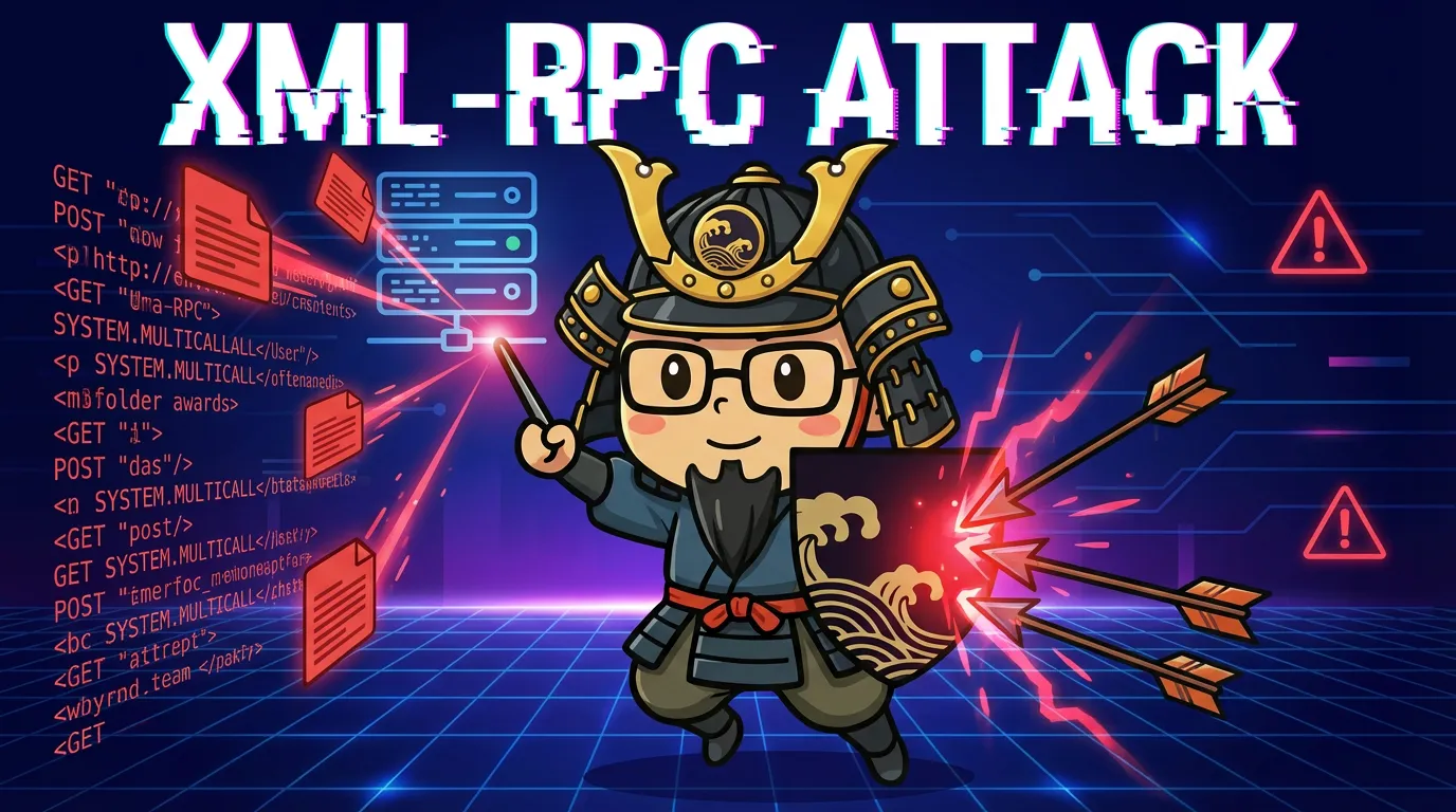WordPressの古い通信機能(xmlrpc.php)を悪用した攻撃です。この機能を使うと、一度の通信で数百回のパスワード試行が可能になるため、通常のログイン攻撃よりもサーバーへの負荷が高く危険です。